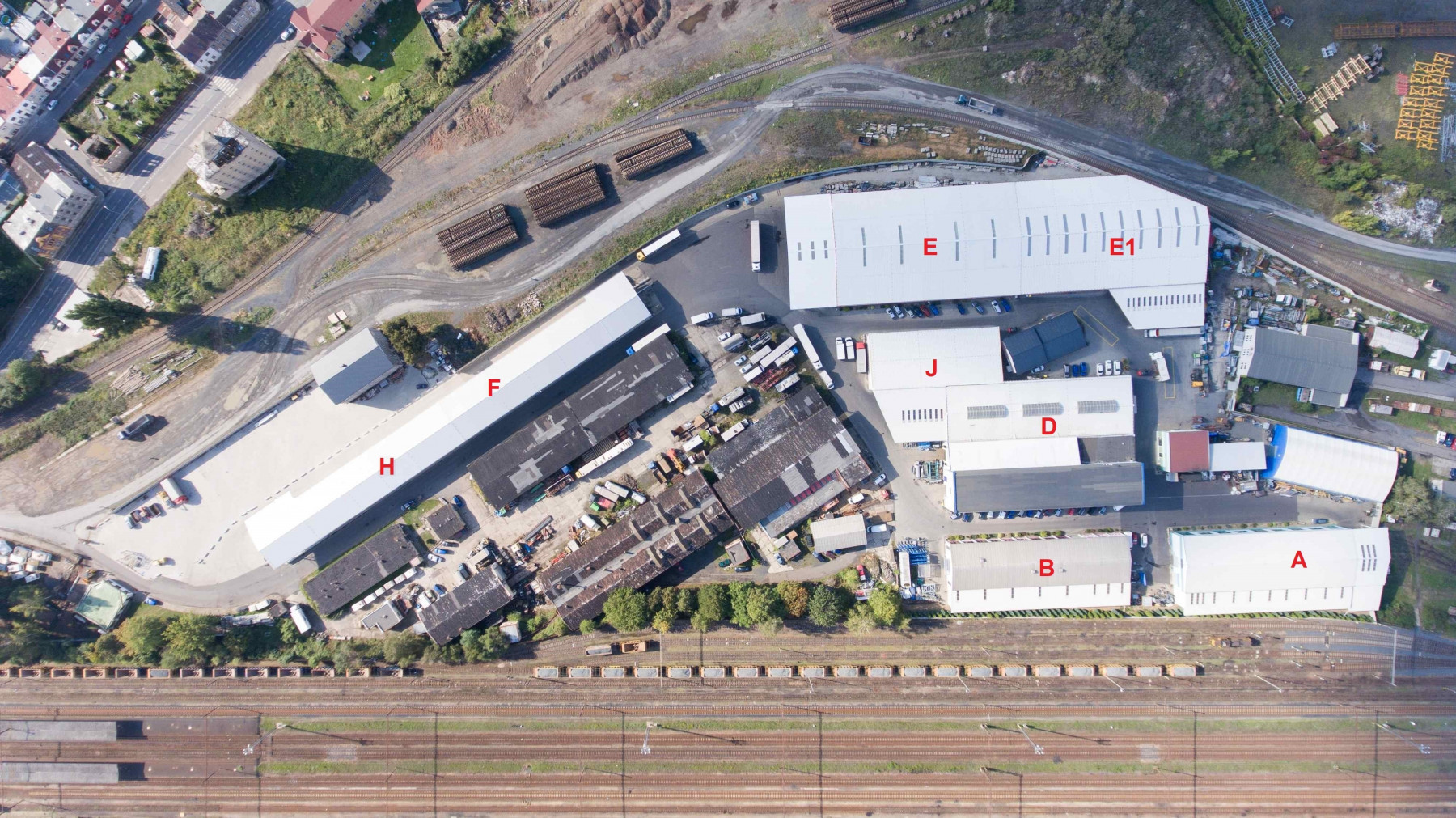 | Název | Skladovací plocha (m2) | Přístřešky (m2) | Výška haly (m) | Temperace (°C) | Rampa | Nosnost (t) | Dostupnost |